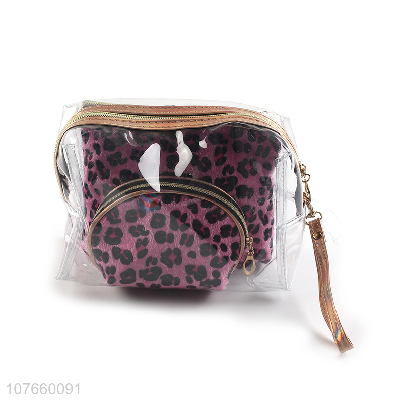 Leopard print plush style female fashion cosmetic bag three-piece set