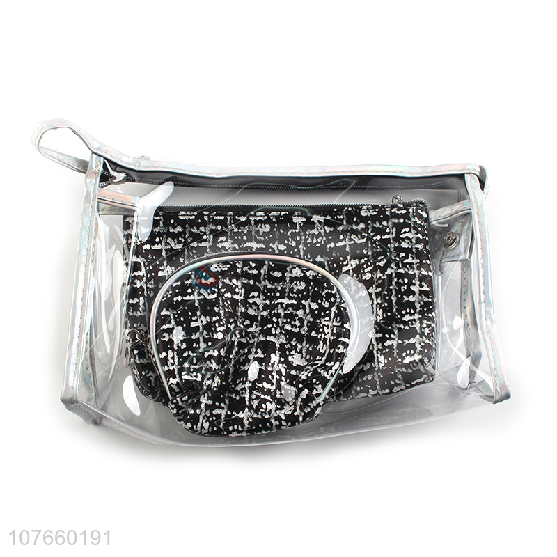 Simple and generous fashion wash bag travel portable black cosmetic bag set