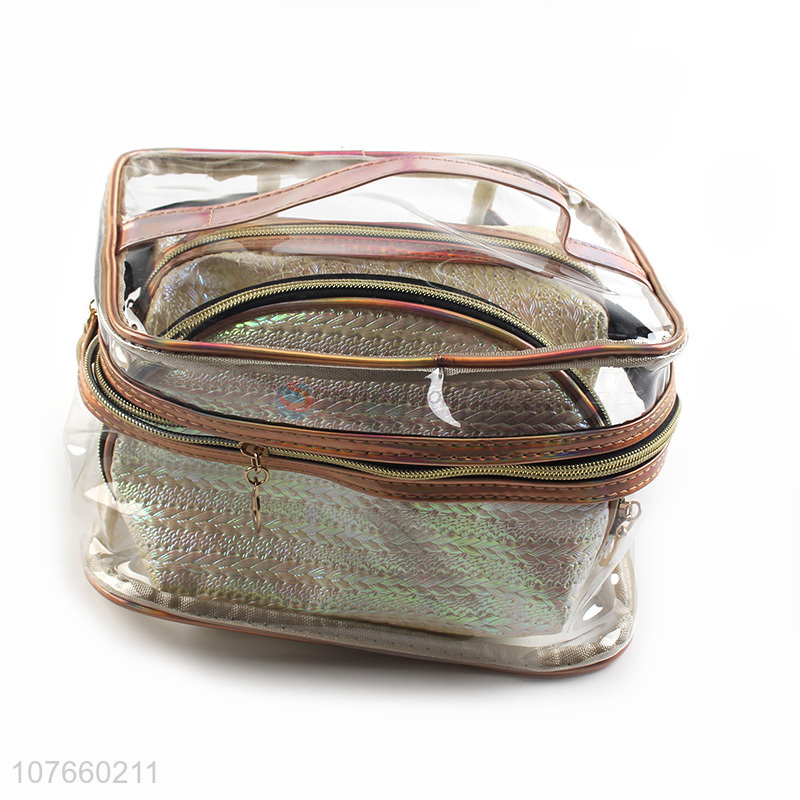 Wholesale square portable toiletry bag set portable cosmetic bag three-piece set