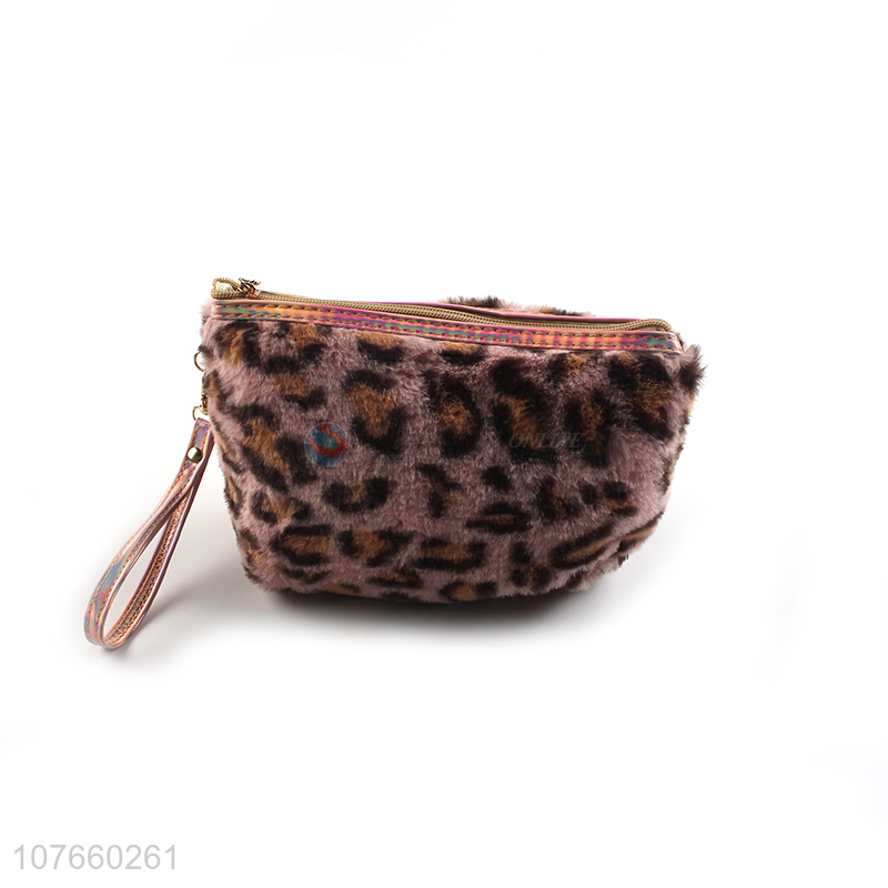 Fashion leopard print long hair portable toilet bag cosmetic bag