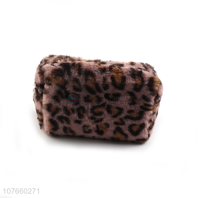 Wholesale leopard print long hair portable wash bag cosmetic bag