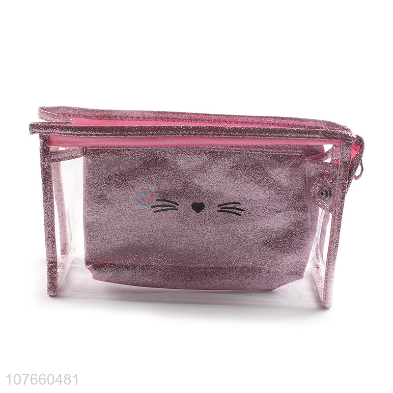 Hot sale pvc transparent storage bag with purple sequin cosmetic bag set