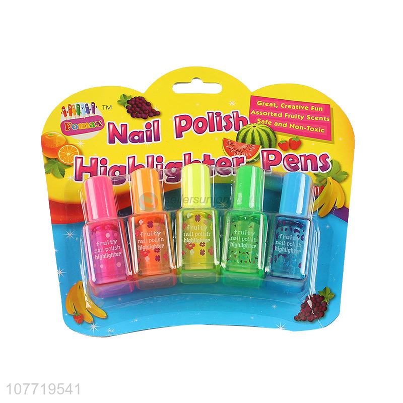 Custom 5 Pieces Nail Polish Shape Fruity Scents Highlighter Marker Set