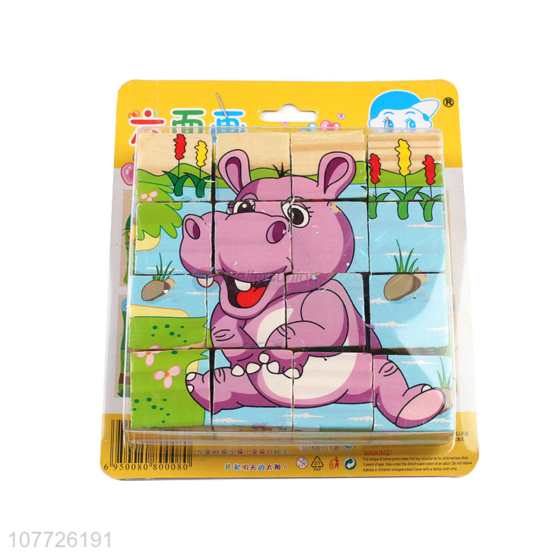 Six-sided picture puzzle wooden 3D building block educational toy for children