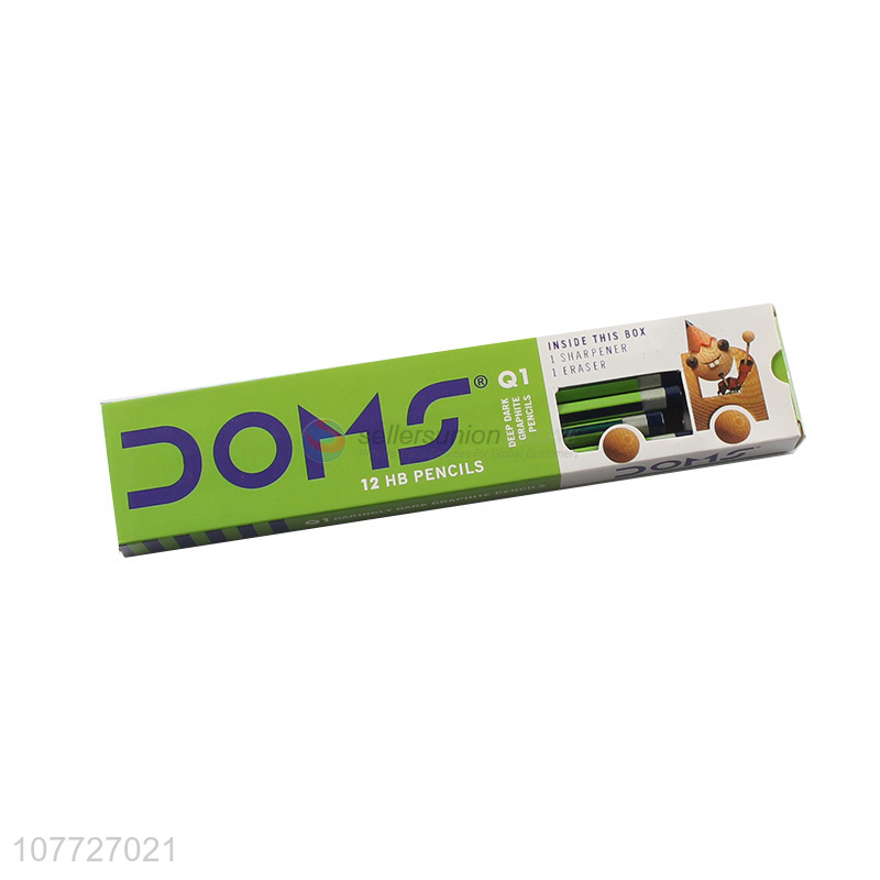 Wholesale 12 Pieces Deep Dark HB Pencil With Sharpener And Eraser Set