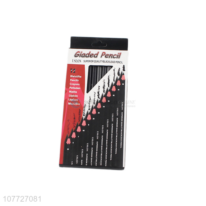 Top Quality 12 Pieces Wooden Pencil Black Lead Pencil For School And Office