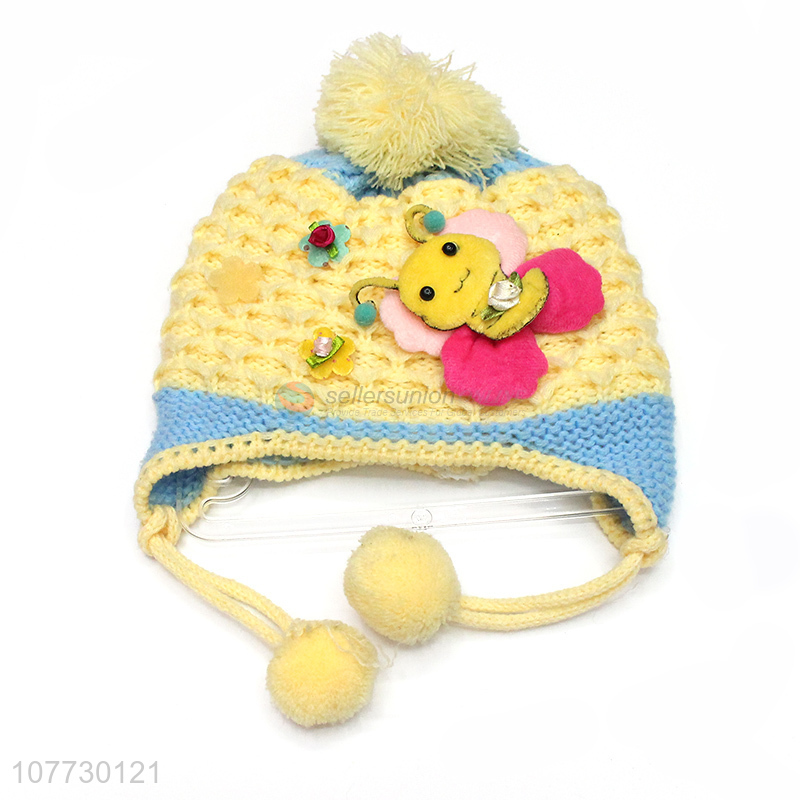 Most popular cartoon animal children winter acrylic knitting hat with earflaps