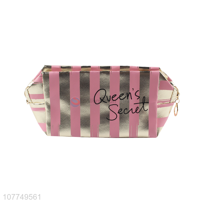 High quality pink stripe fashion portable storage bag cosmetic bag