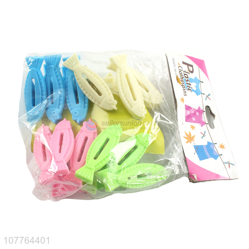 Creative fish shape plastic clothes clip 12 pieces clothespins