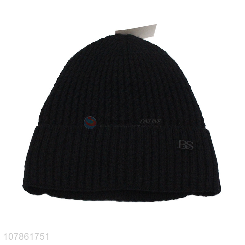 Fashion products black warm beanie cap knitted hat for sale