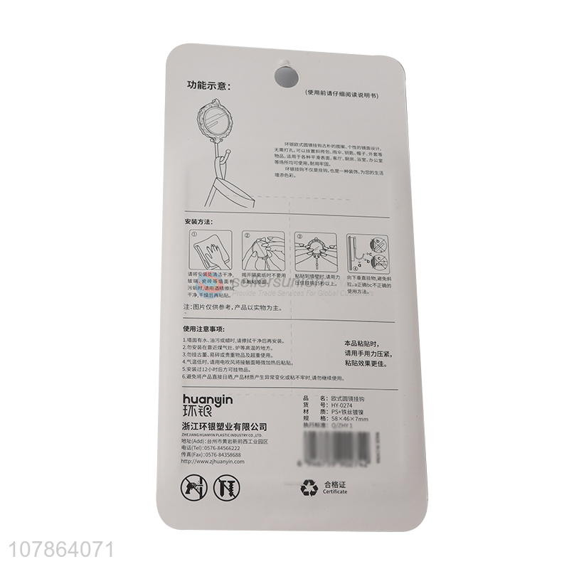 Wholesale luxury European mirror shaped sticky hook adhesive hook