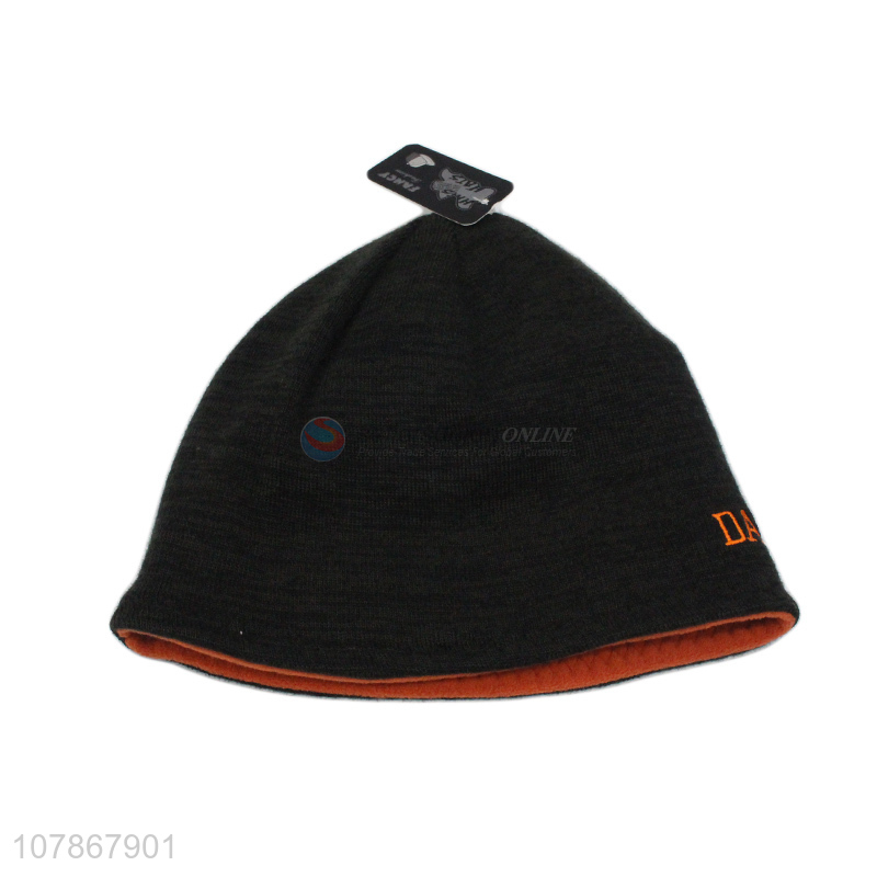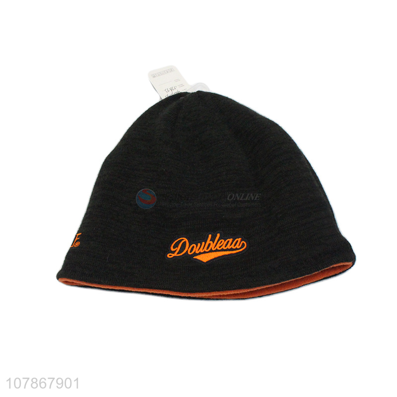 New design orange embroidered velvet hat warm sports knitted hat