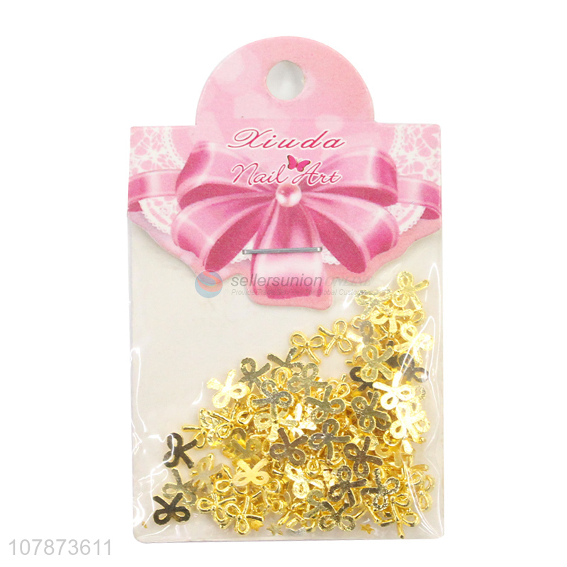 Low price Wholesale Golden Bowknot DIY Nail Art Jewelry for Lady