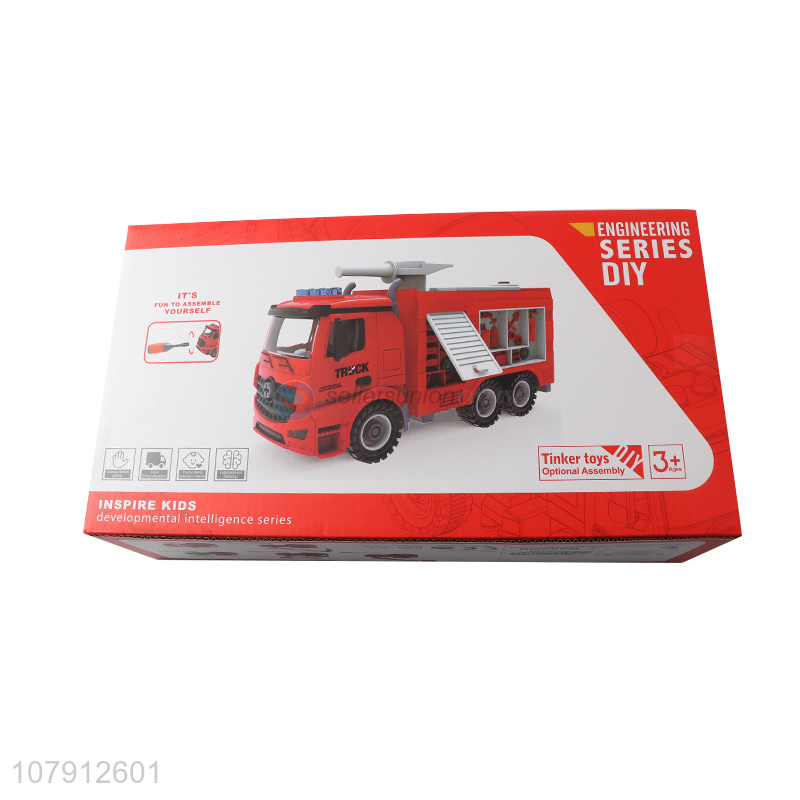 New product children car model toy diy assembled fire fighting truck toy