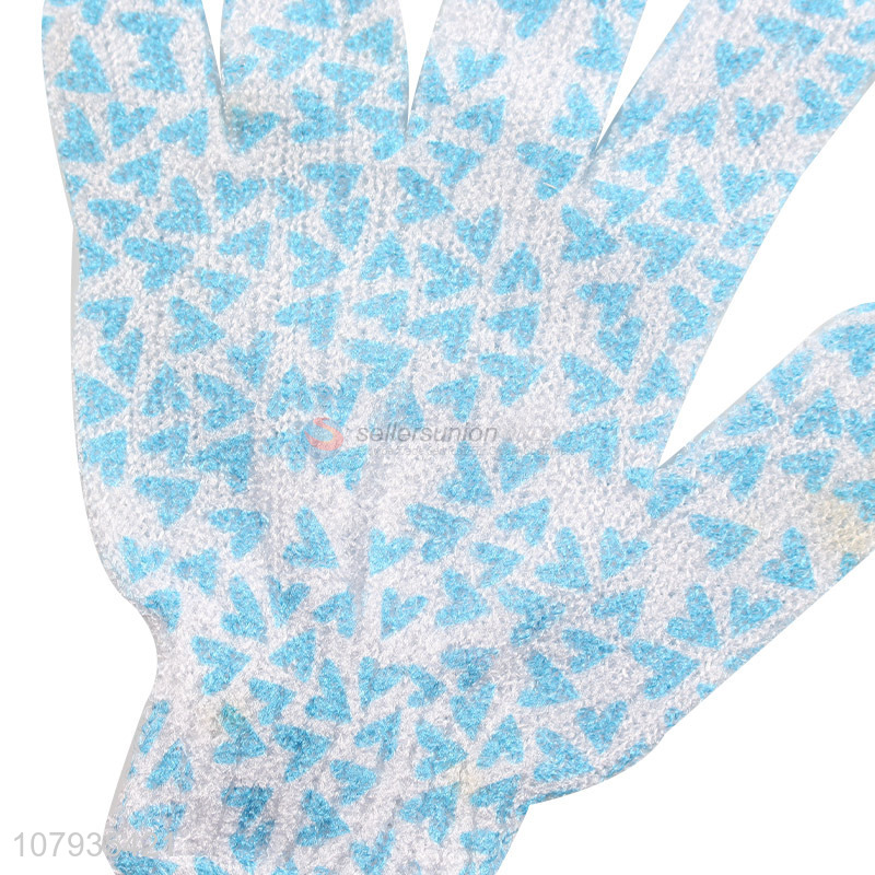 Cheap price heart pattern polyester cleaning bath gloves for sale