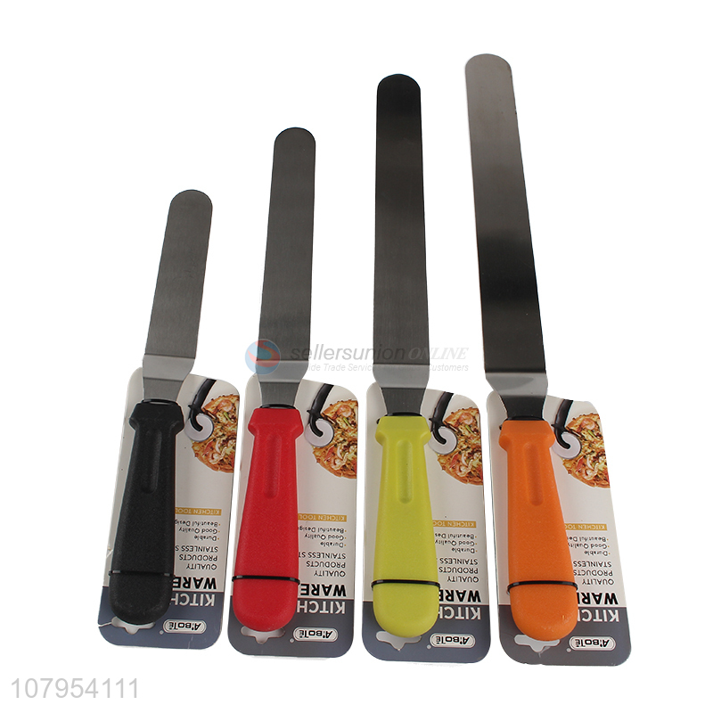 China manufacturer plastic handle stainless steel curved cake cream spatula