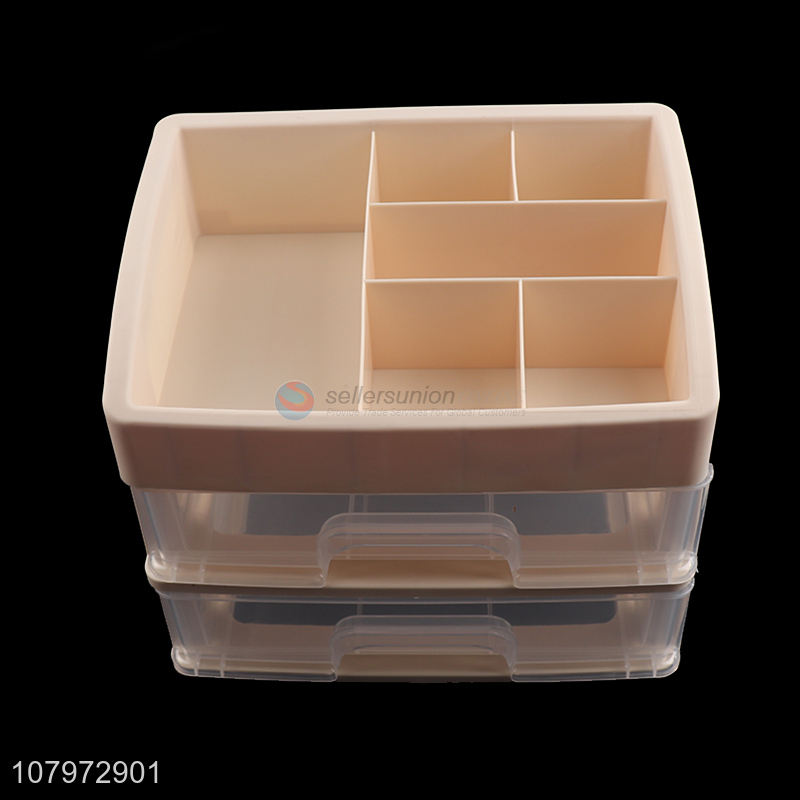 Popular product multi-use 2-tier plastic storage box desk drawer makeup organizer