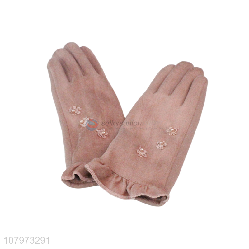 Factory price pink thick warm gloves ladies windproof gloves