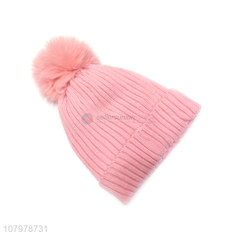 China supplier kids winter cosy knitted beanie hat toddler fleece lined cap