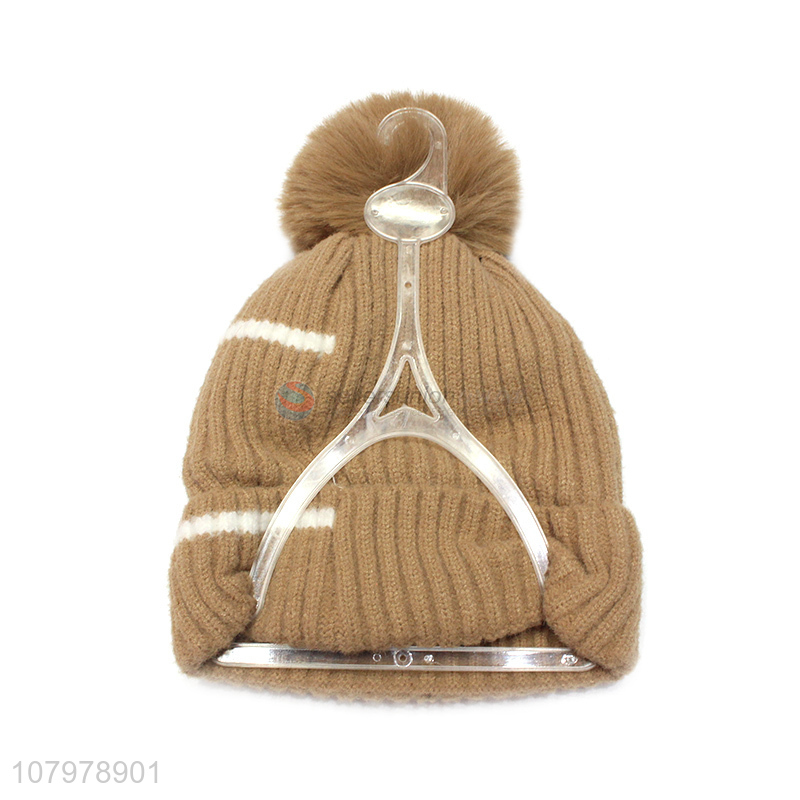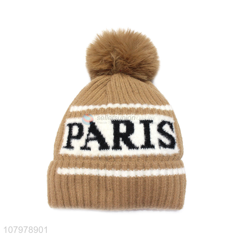 Hot items women winter skull cap jacquard knitted fleece lined beanies