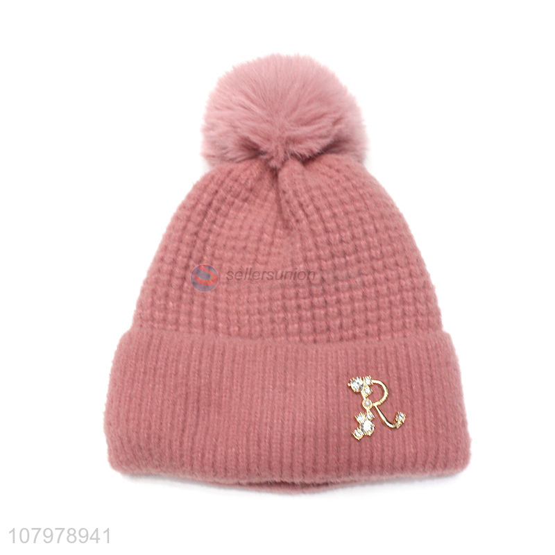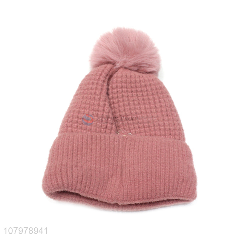 Online wholesale women pom pom winter warm soft beanie with fleece lining