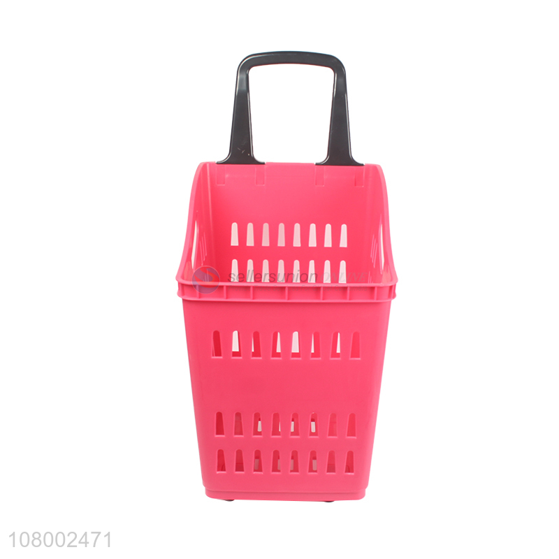 Good quality supermarket highback rolling plastic shopping basket with wheels