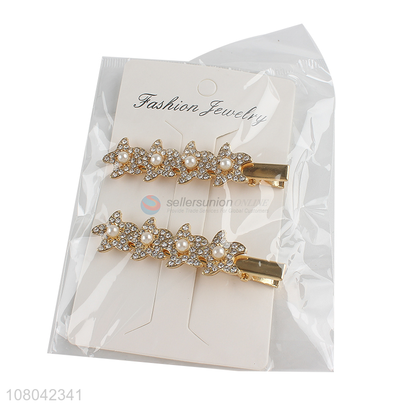 Factory price alloy flower shape pearl hairpin hair clips