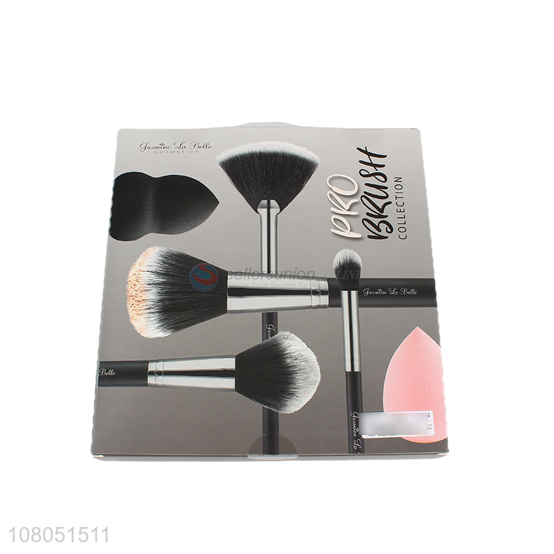 Wholesale 4pcs makeup brush kit with sponge professional makeup brush set