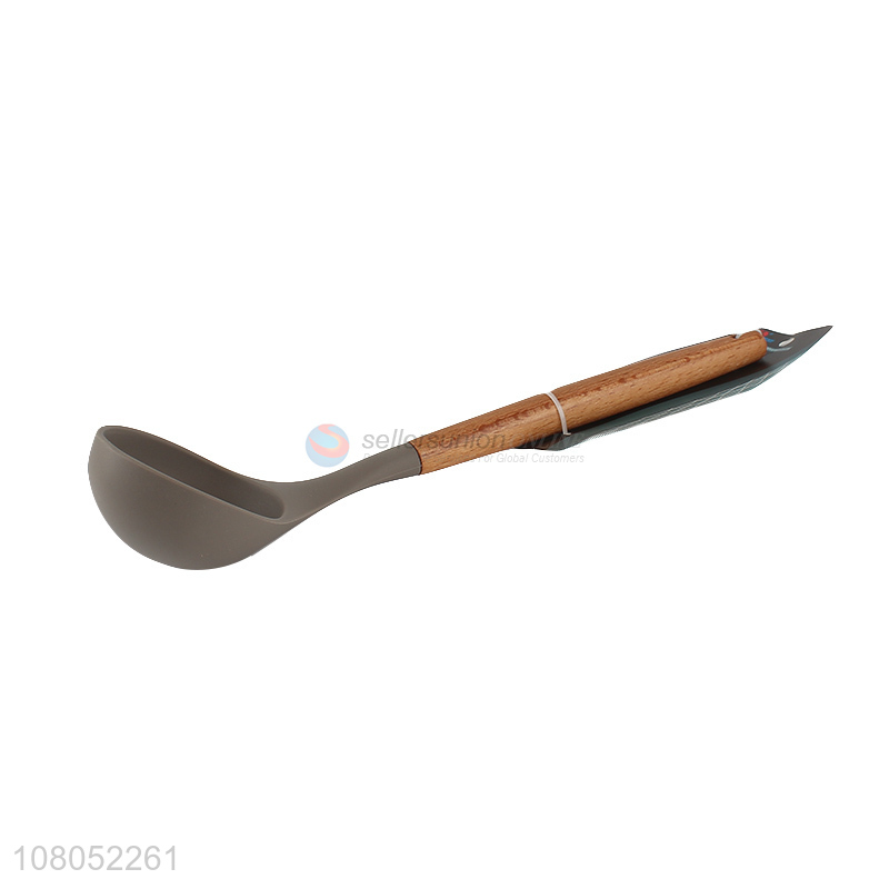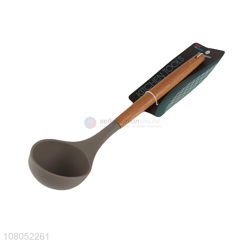 Hot selling nylon cookware heat resistant silicone soup ladle with wooden handle