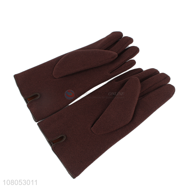 Yiwu wholesale coffee color ladies solid color outdoor warm gloves