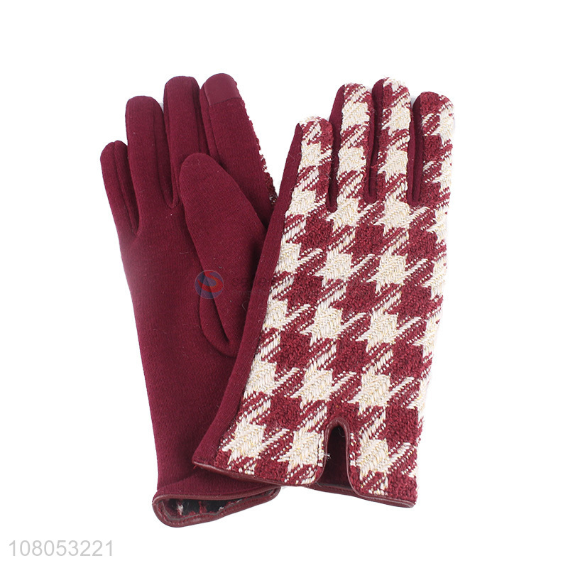 Hot sale red winter fleece lined gloves ladies warm gloves
