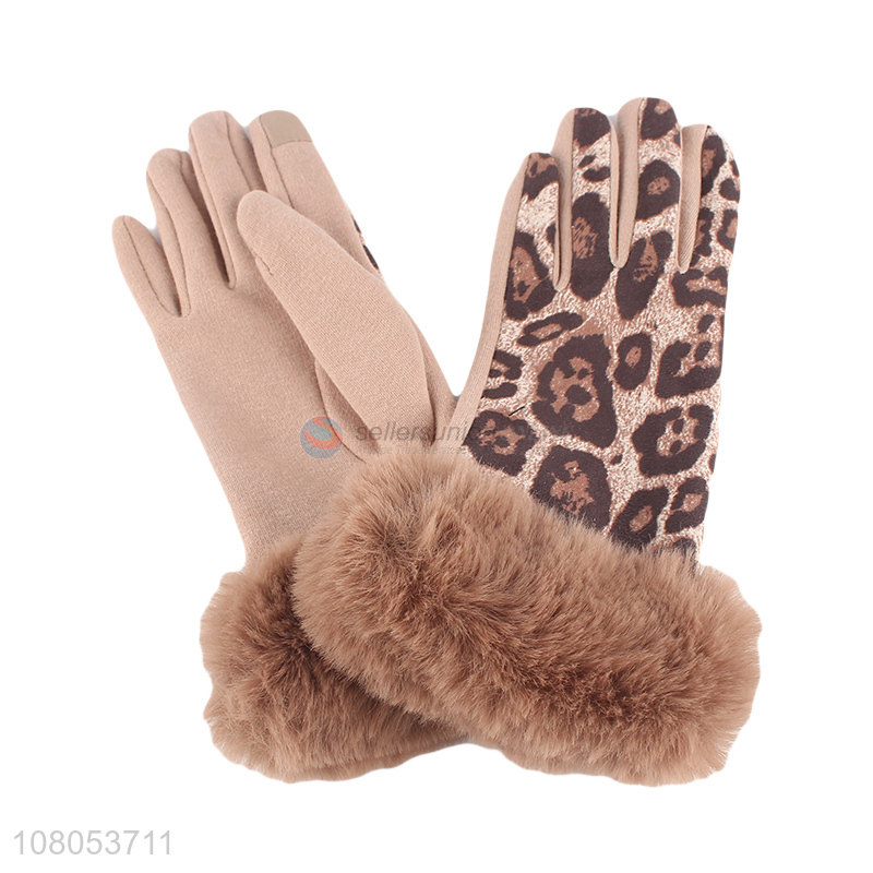 Online wholesale fashion leopard gloves winter warm gloves