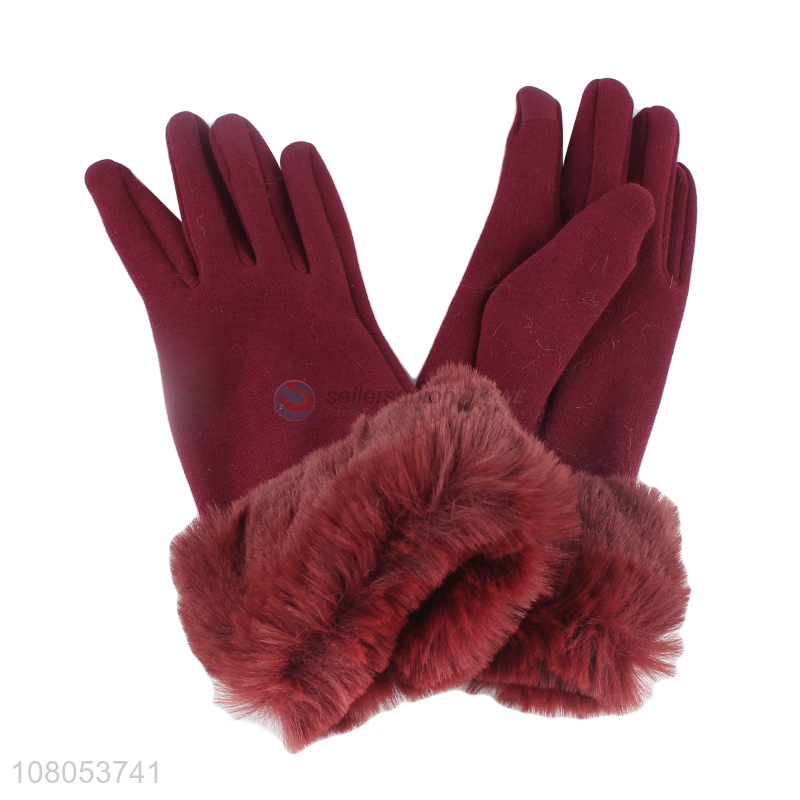 Factory direct sale red outdoor fleece lined gloves for winter