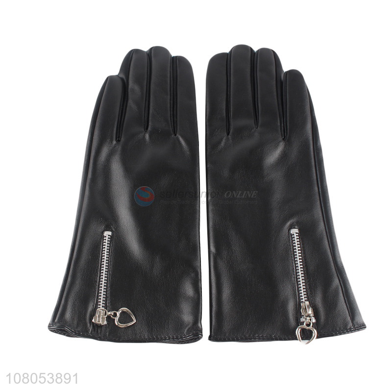 Good sale black leather gloves with fashion design