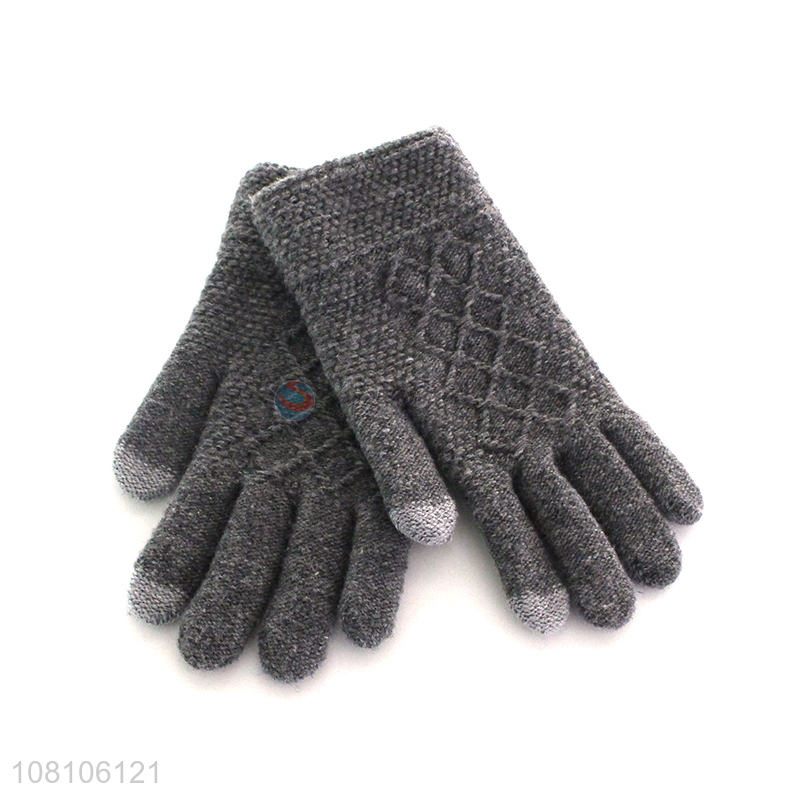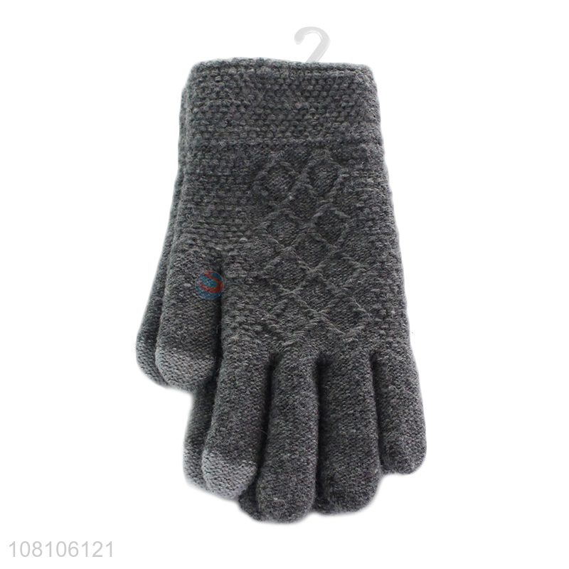 New arrival gray knitted five-finger gloves for winter