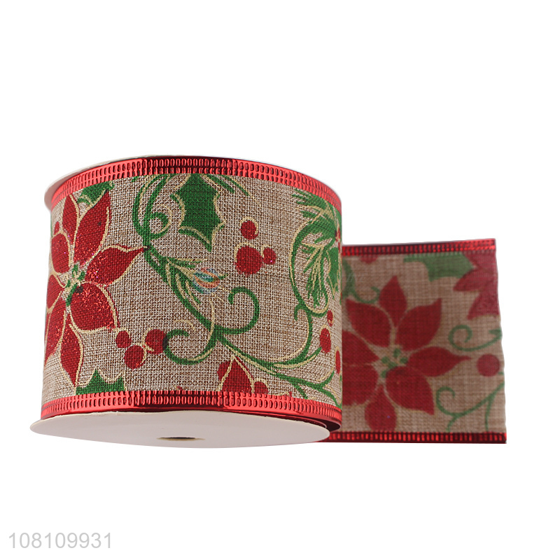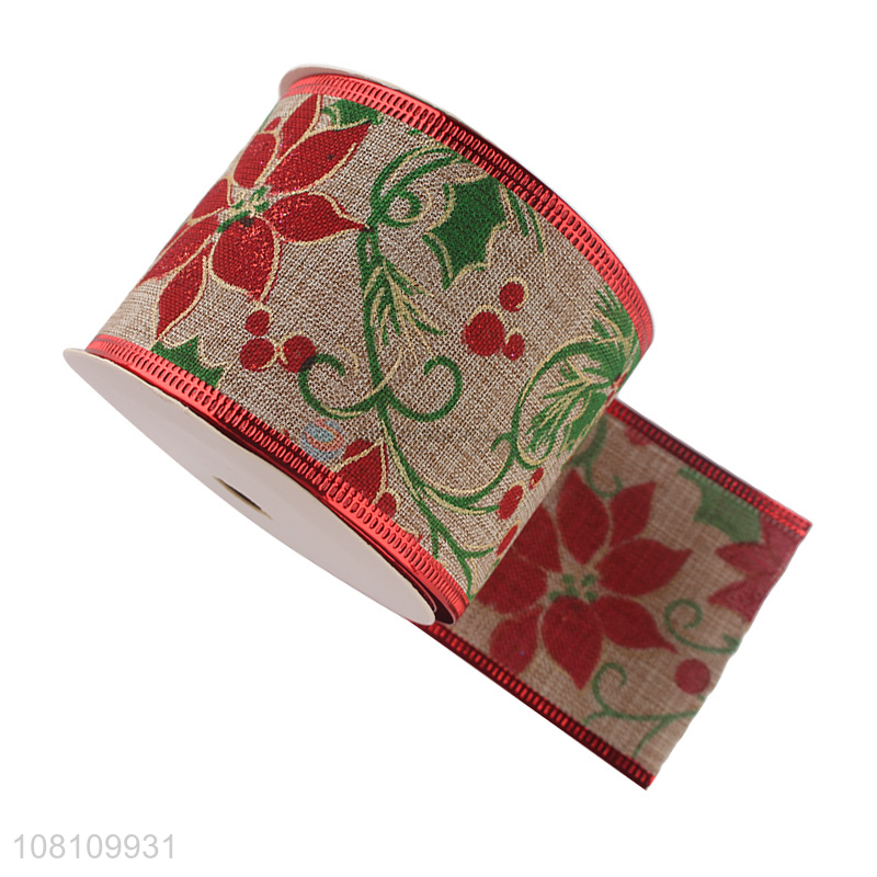 Hot selling printed polyester ribbon Christmas wired ribbon