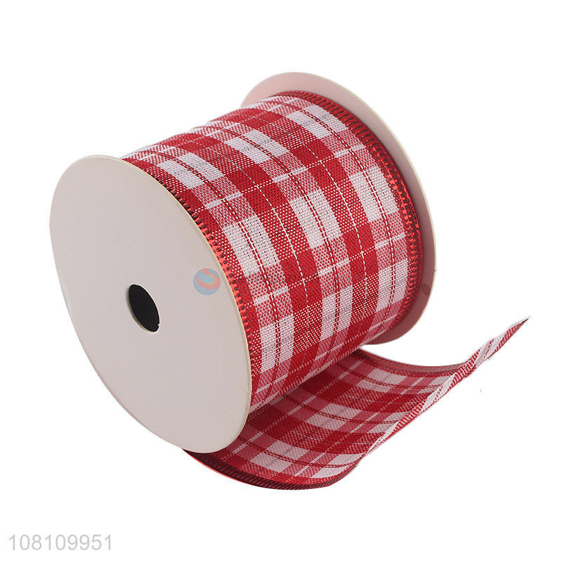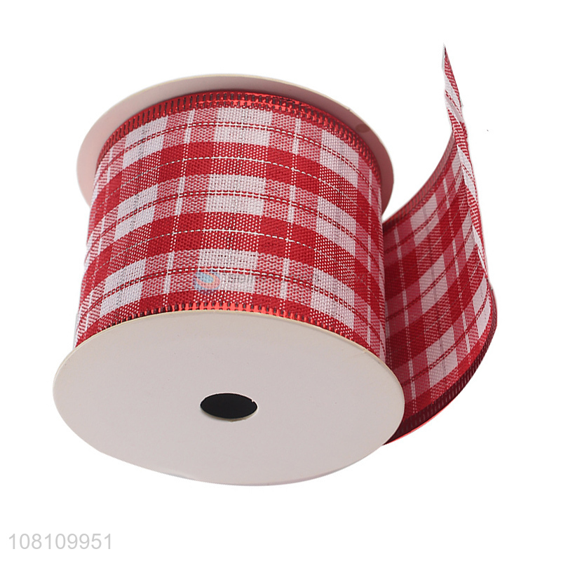 Latest imports Christmas wired edge checked ribbon for sale