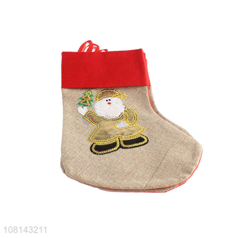 Hot sale linen embroidery Christmas stocking kids candy socks