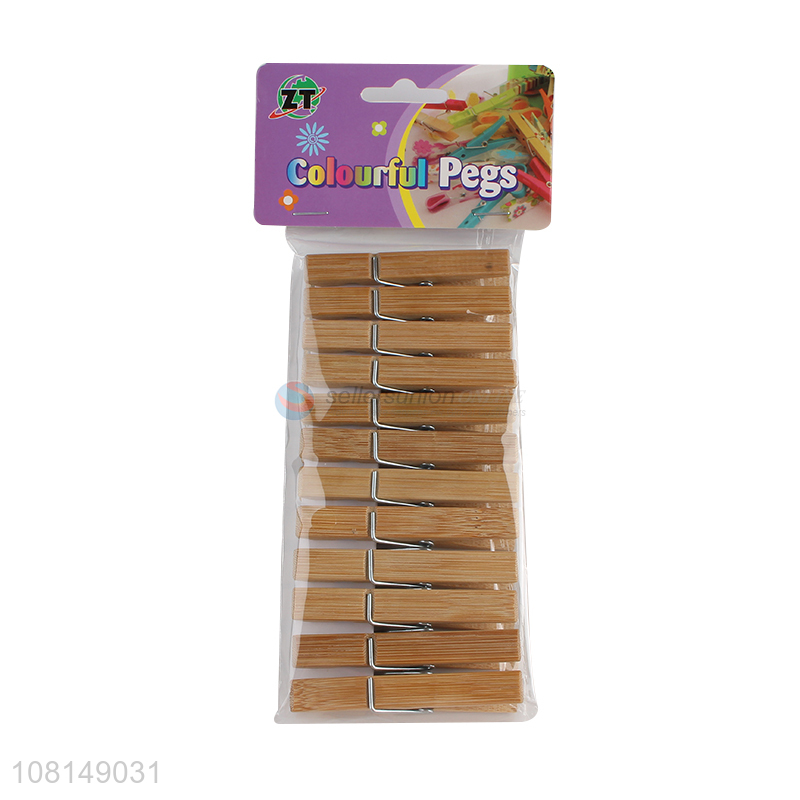China wholesale 12pieces bamboo clothes pegs clips