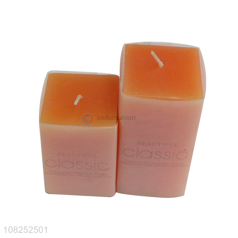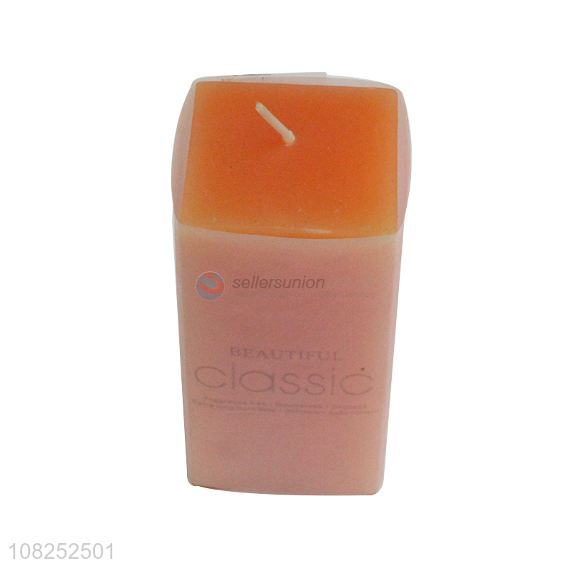Low price orange square column wax simple scented candle