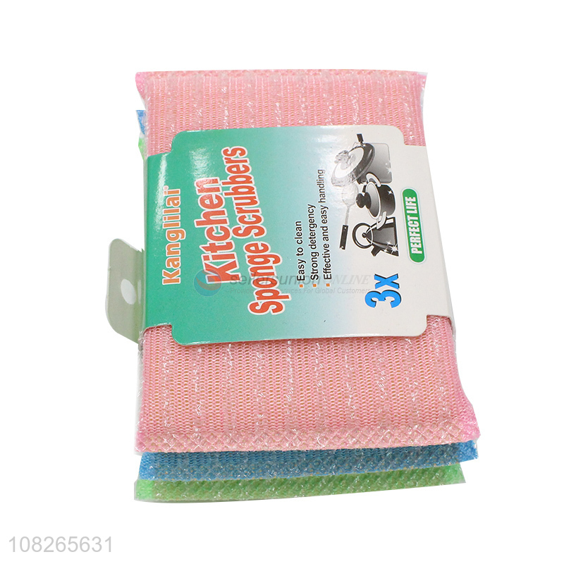 Cheap Kitchen Sponge Scrubber 3 Pieces Scouring Pad Set