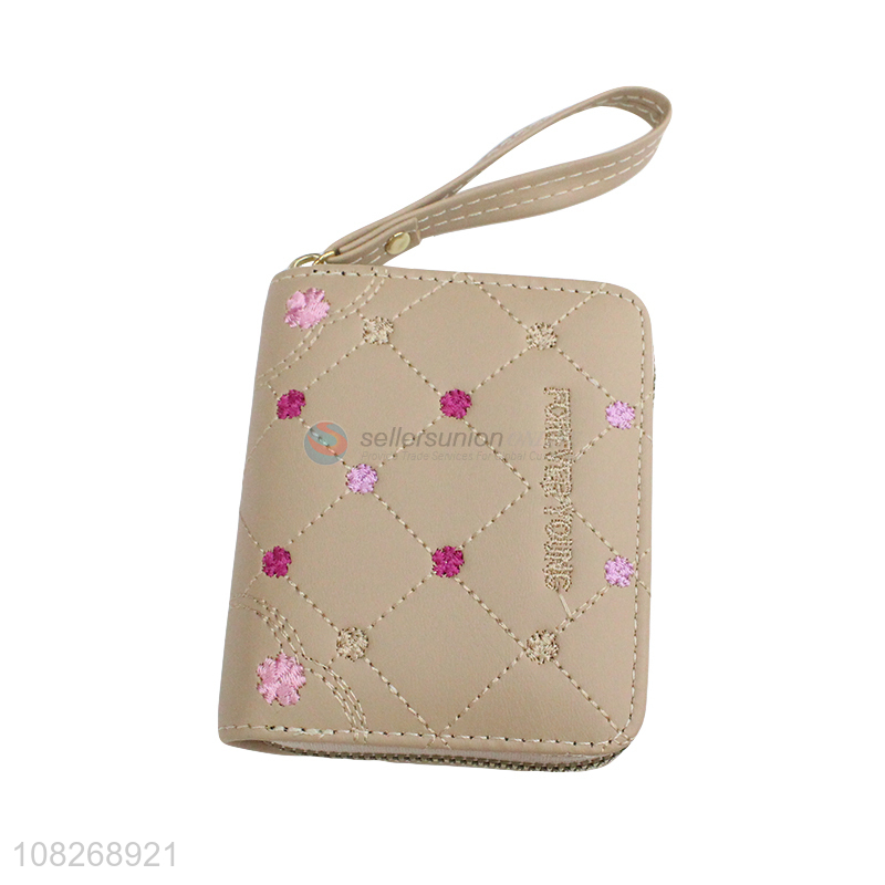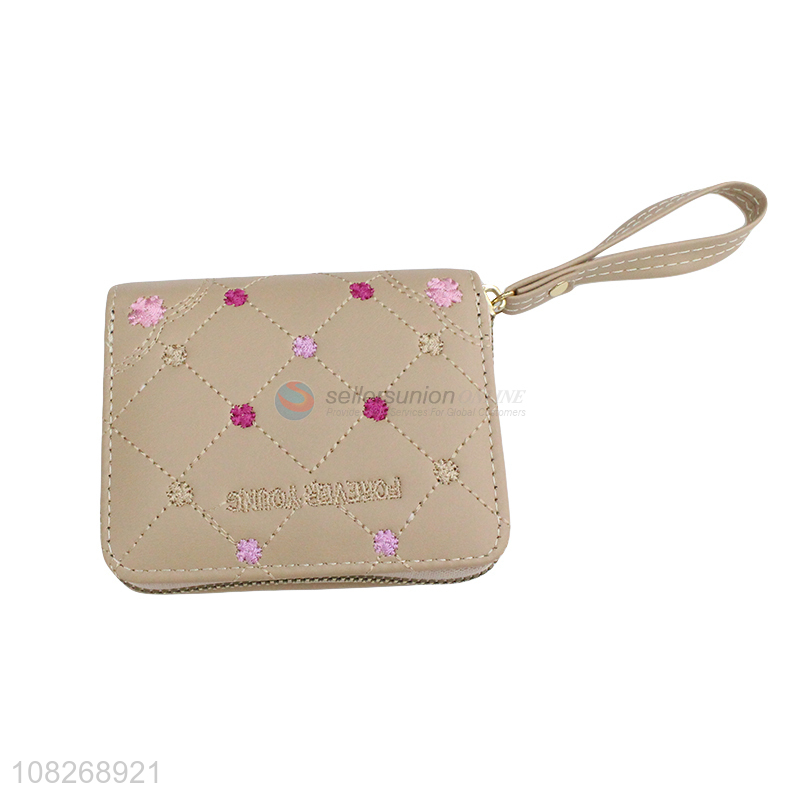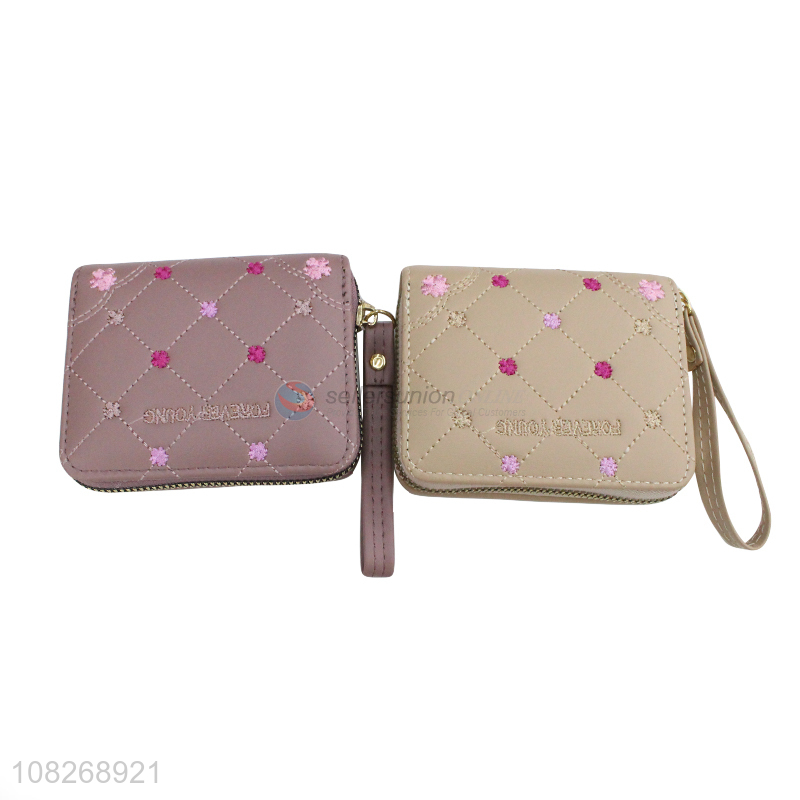 Factory price small pu leather wallets zipper coin pouch wristlet