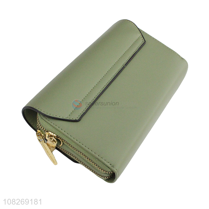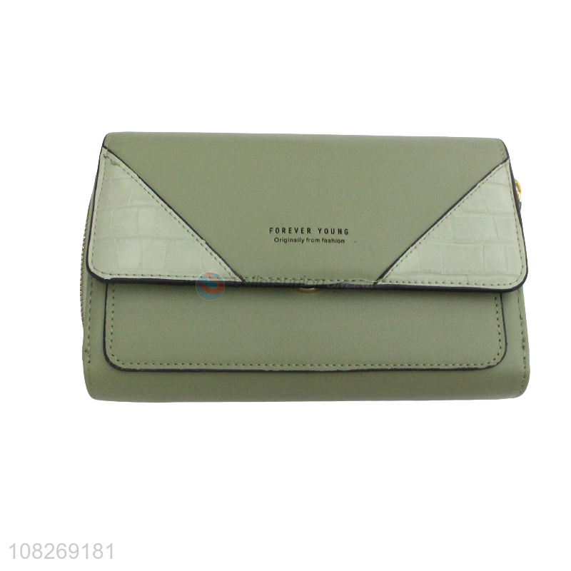 High quality pu leather contrast stitching long wallet for women