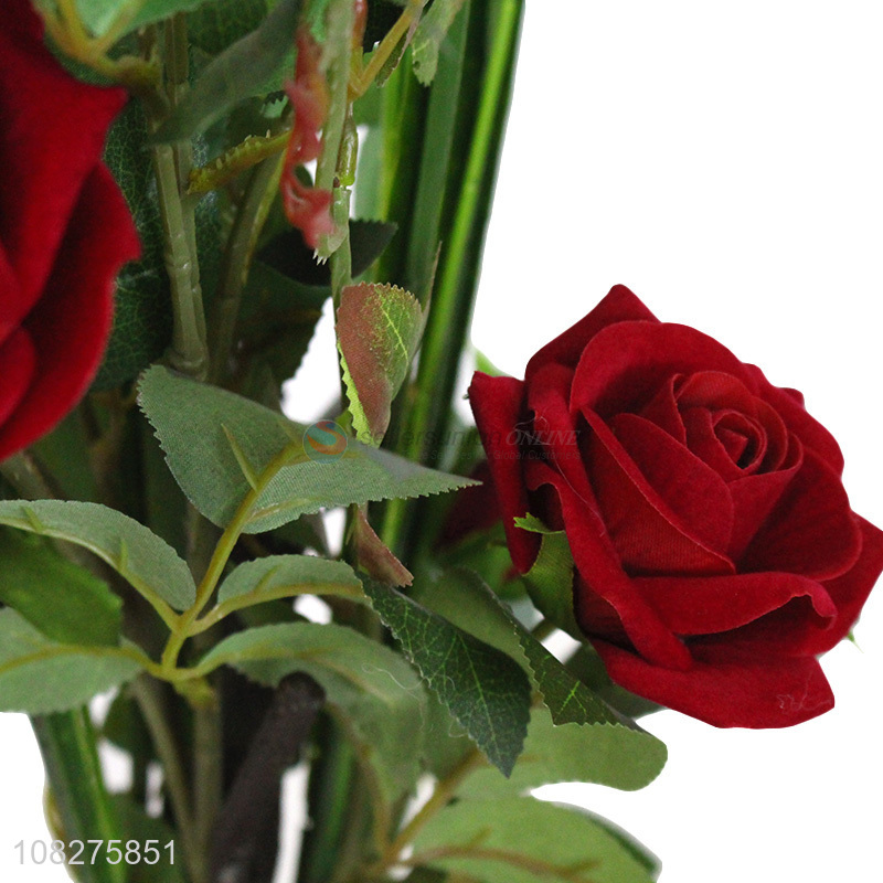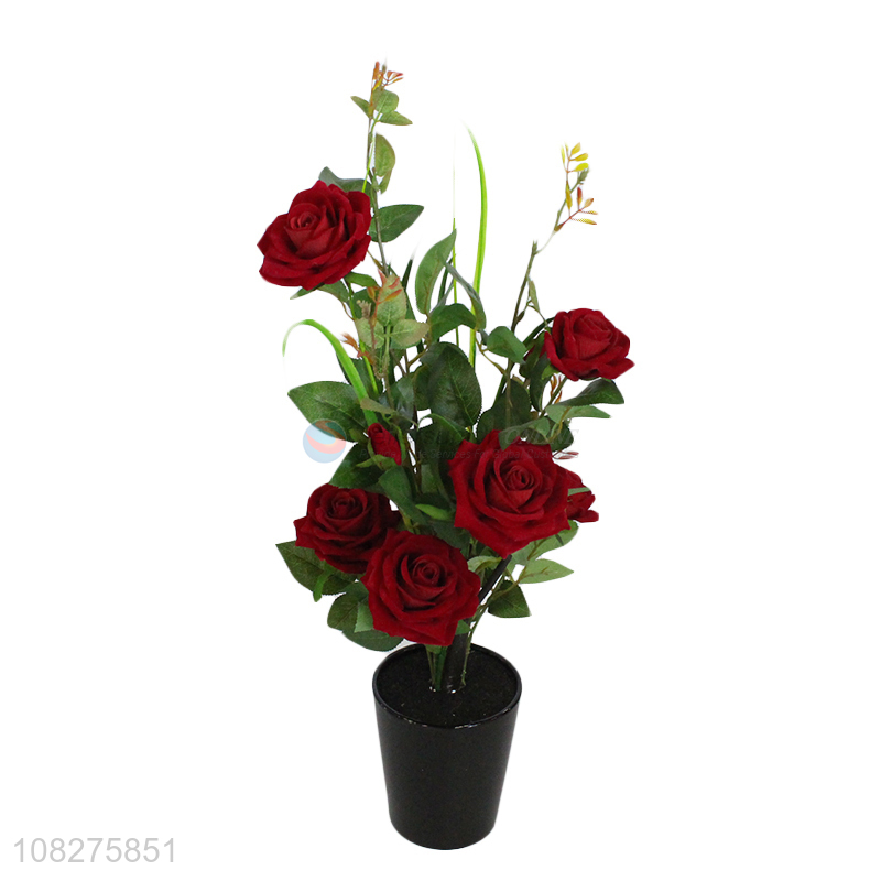 Wholesale artificial rose flowers fake potted flowers for indoor decoration