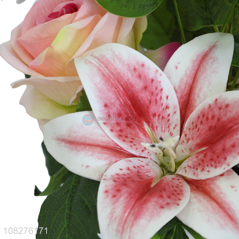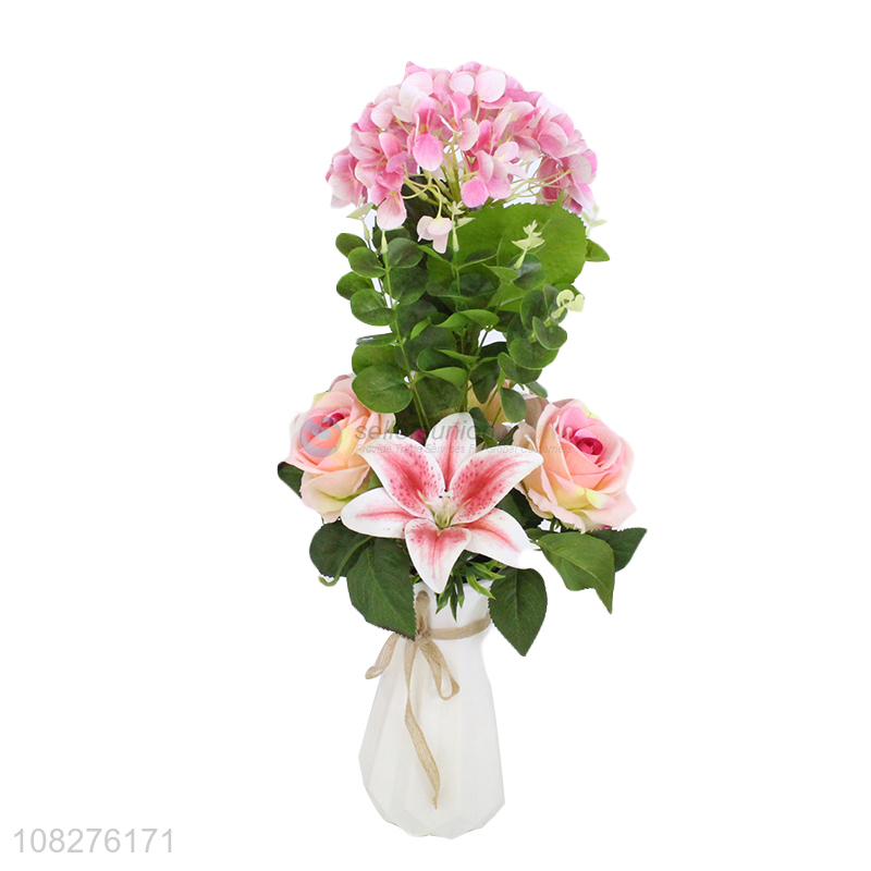 Good price realistic artificial flowers with vase for wedding decoration