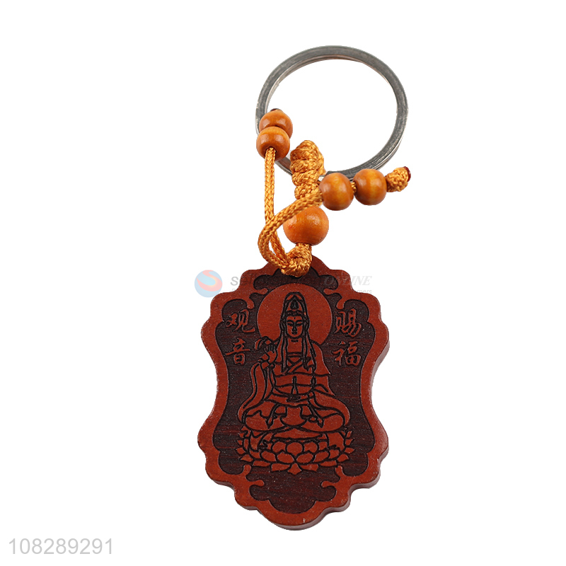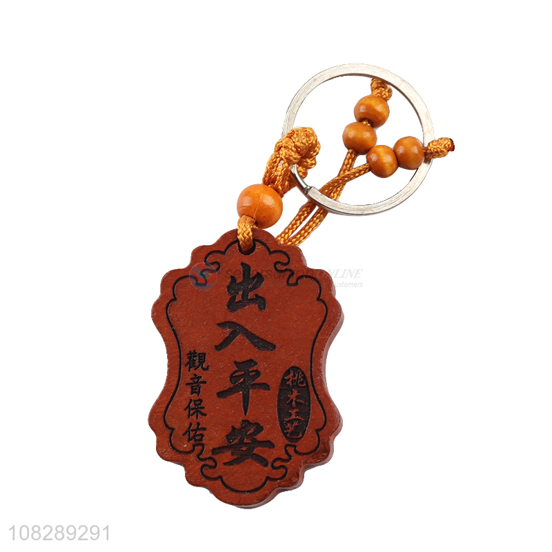 Online wholesale portable pendant wood carved keychain for bags
