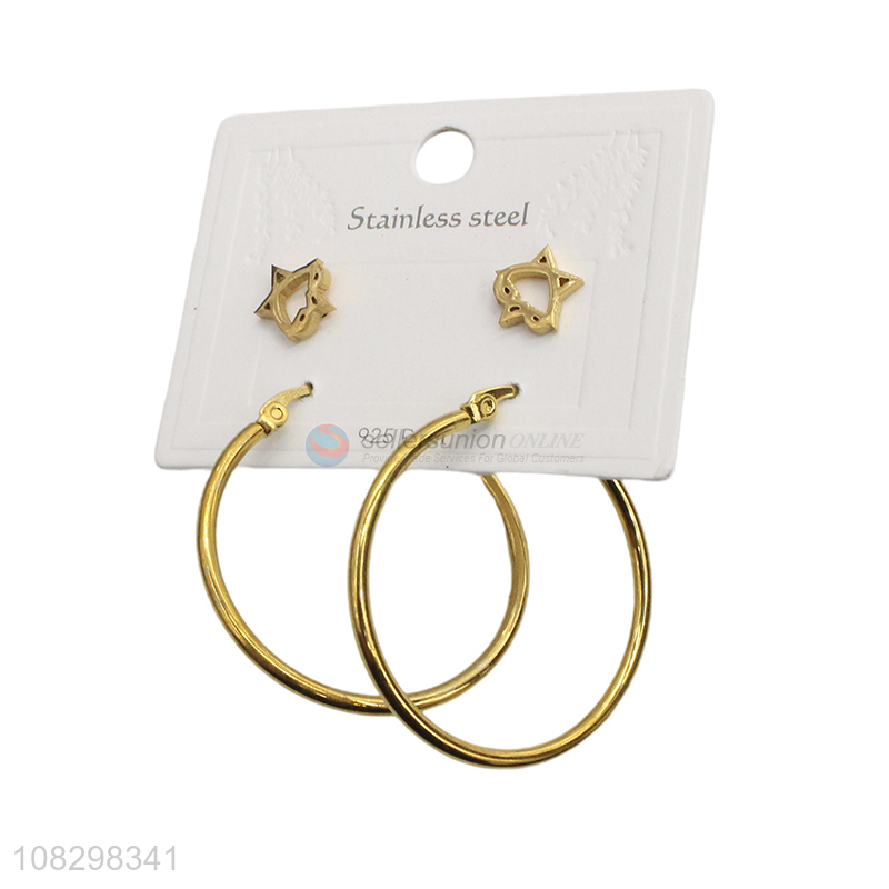 Wholesale stainless steel stud hoop earrings set for women girls