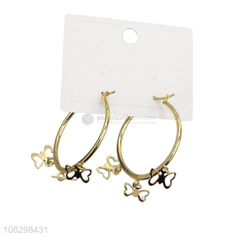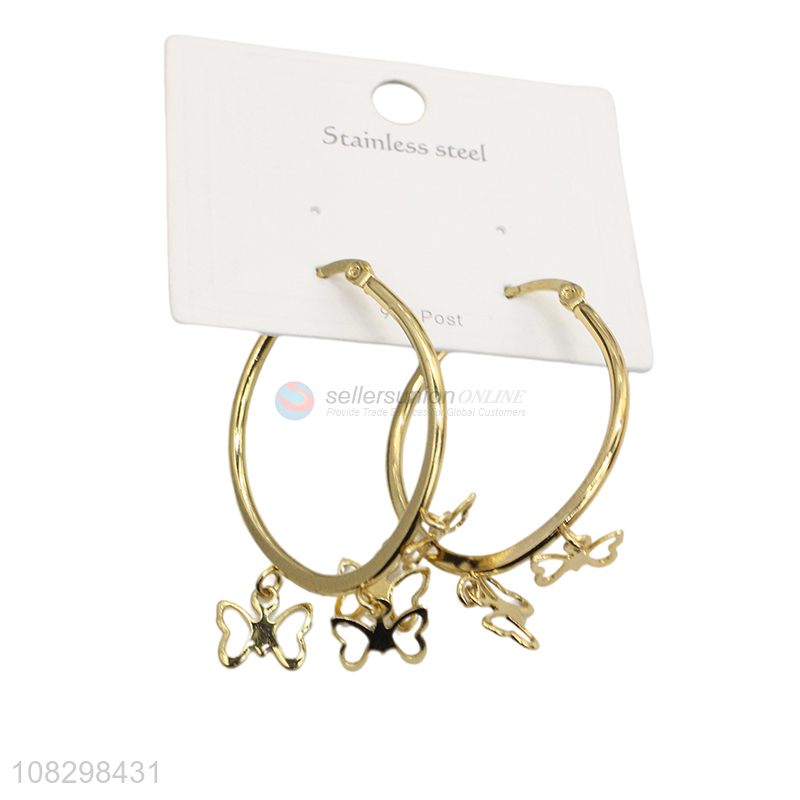 Factory price stainless steel butterfly pendant hoop earrings