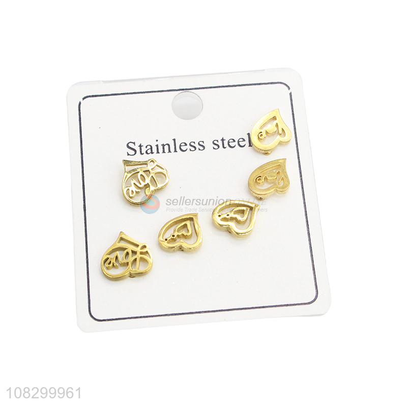 Popular Heart Shape Ear Stud 3 Pairs Earrings Set