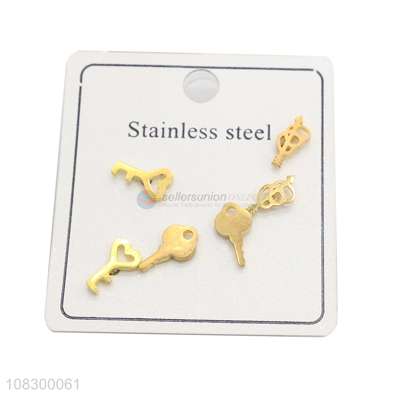 Fashion Key Shaped Earrings 3 Pairs Ear Stud Set